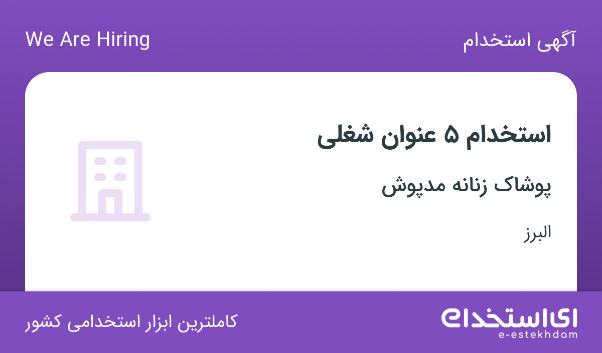 پوشاک زنانه مدپوش جهت تکمیل کادر خود در استان البرز از افراد واجد شرایط زیر دعوت به همکاری می نماید.