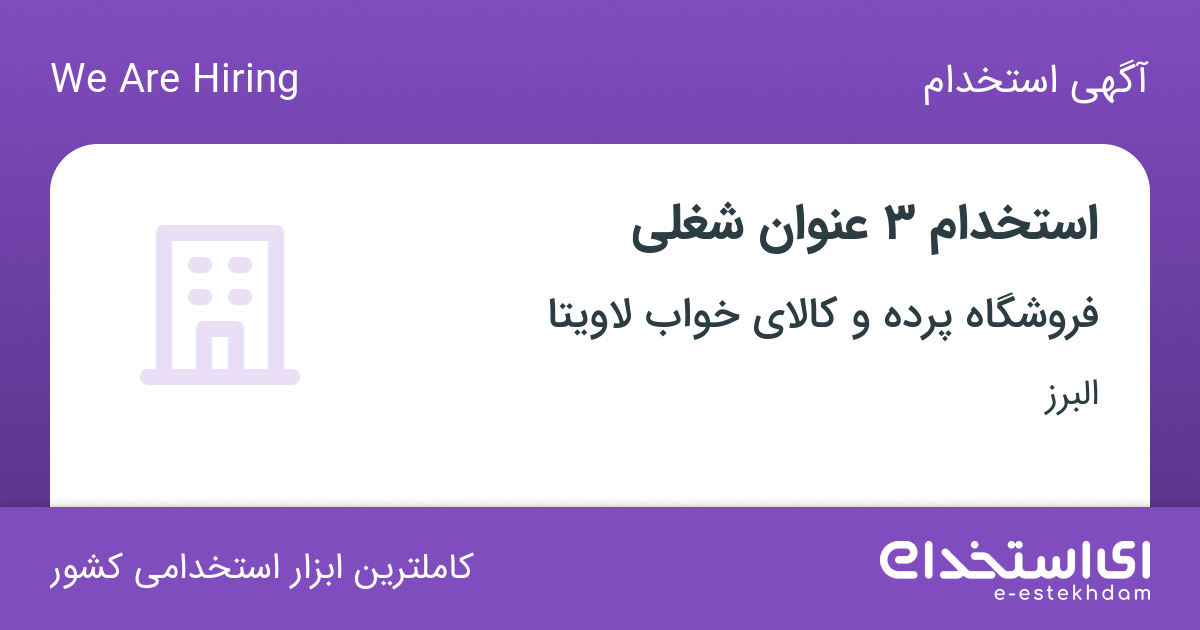 فروشگاه پرده و کالای خواب لاویتا جهت تکمیل کادر خود در استان البرز از افراد واجد شرایط زیر دعوت به همکاری می نماید.