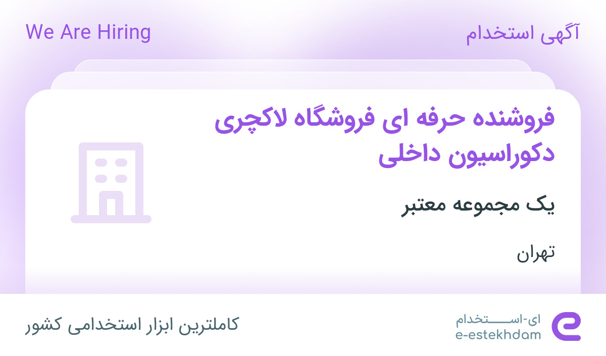 یک شرکت واردکننده متریال لوکس اروپایی دکوراسیون داخلی در استان تهران از افراد واجد شرایط ذیل دعوت به همکاری در شعبه نیاوران خود می نماید.
