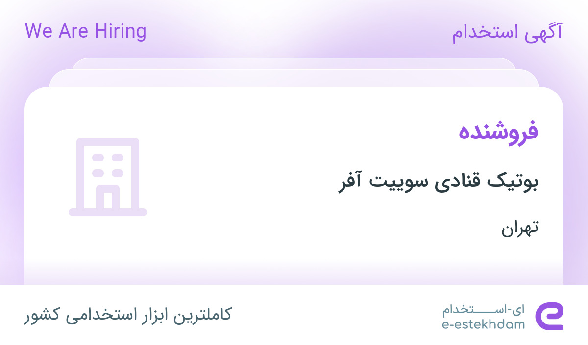بوتیک قنادی سوییت آفر جهت تکمیل کادر خود در استان تهران از افراد واجد شرایط زیر دعوت به همکاری مینماید.