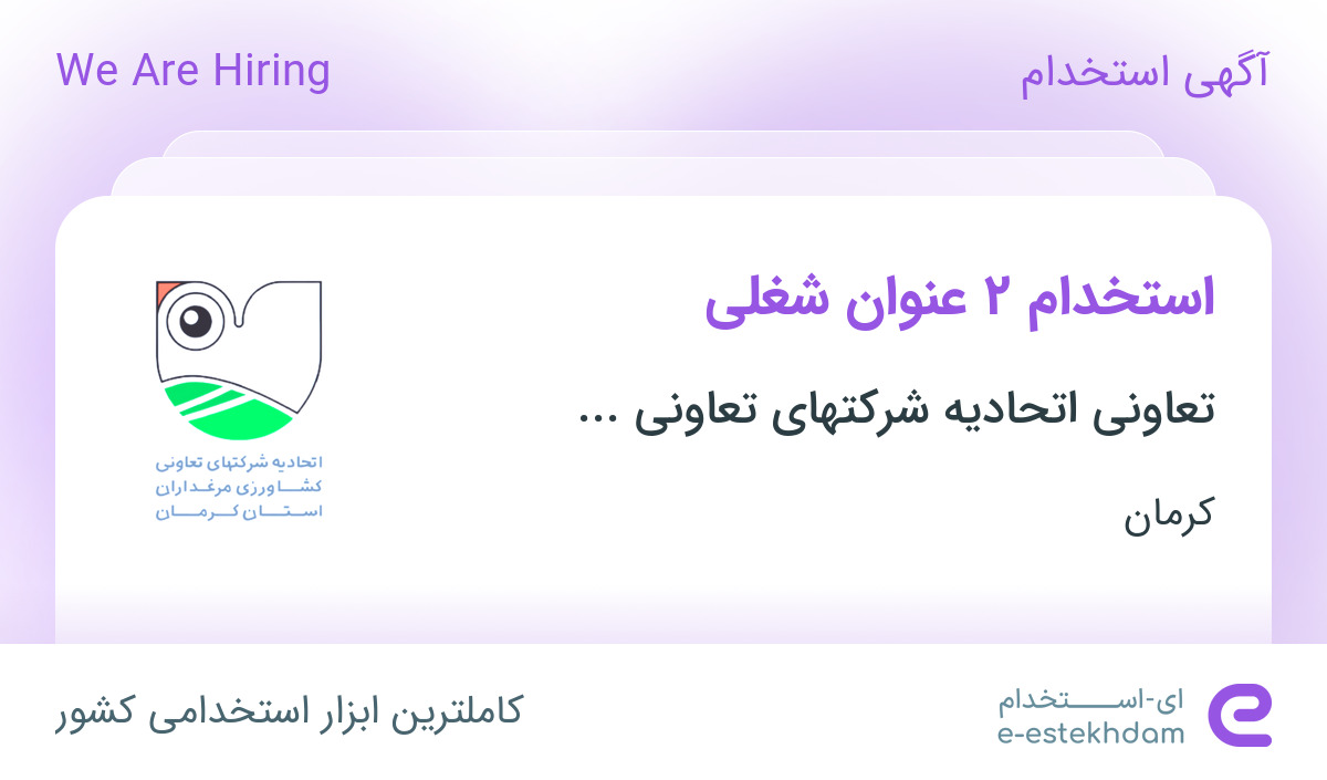 استخدام تعاونی اتحادیه شرکتهای تعاونی کشاورزی مرغداران کرمان