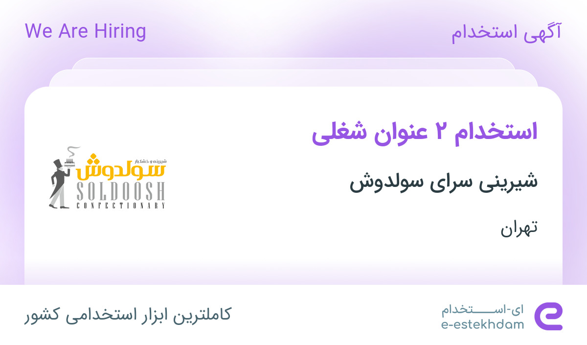 شیرینی سرای سولدوش جهت تکمیل کادر خود در استان تهران از افراد واجد شرایط زیر دعوت به همکاری می نماید.