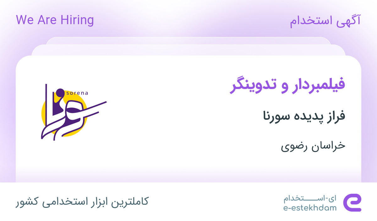 استخدام فیلمبردار و تدوینگر در فراز پدیده سورنا در خراسان رضوی