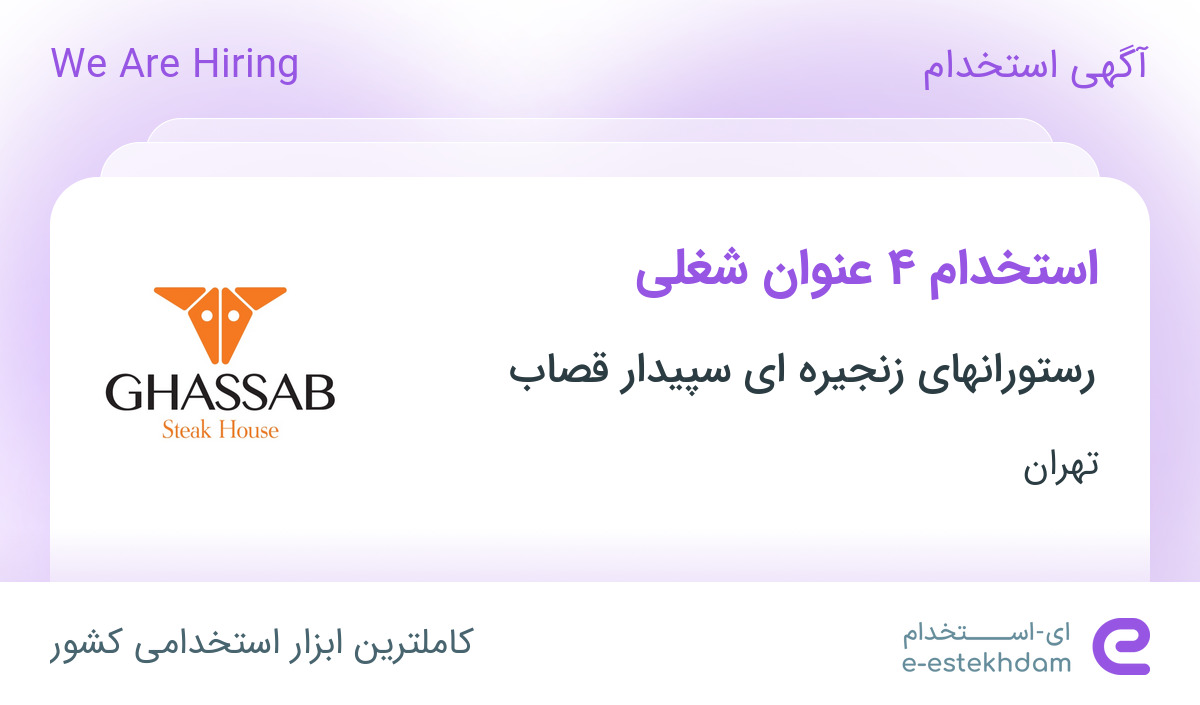 رستورانهای زنجیره ای سپیدار قصاب جهت تکمیل کادر خود در استان تهران از افراد واجد شرایط زیر دعوت به همکاری می نماید.