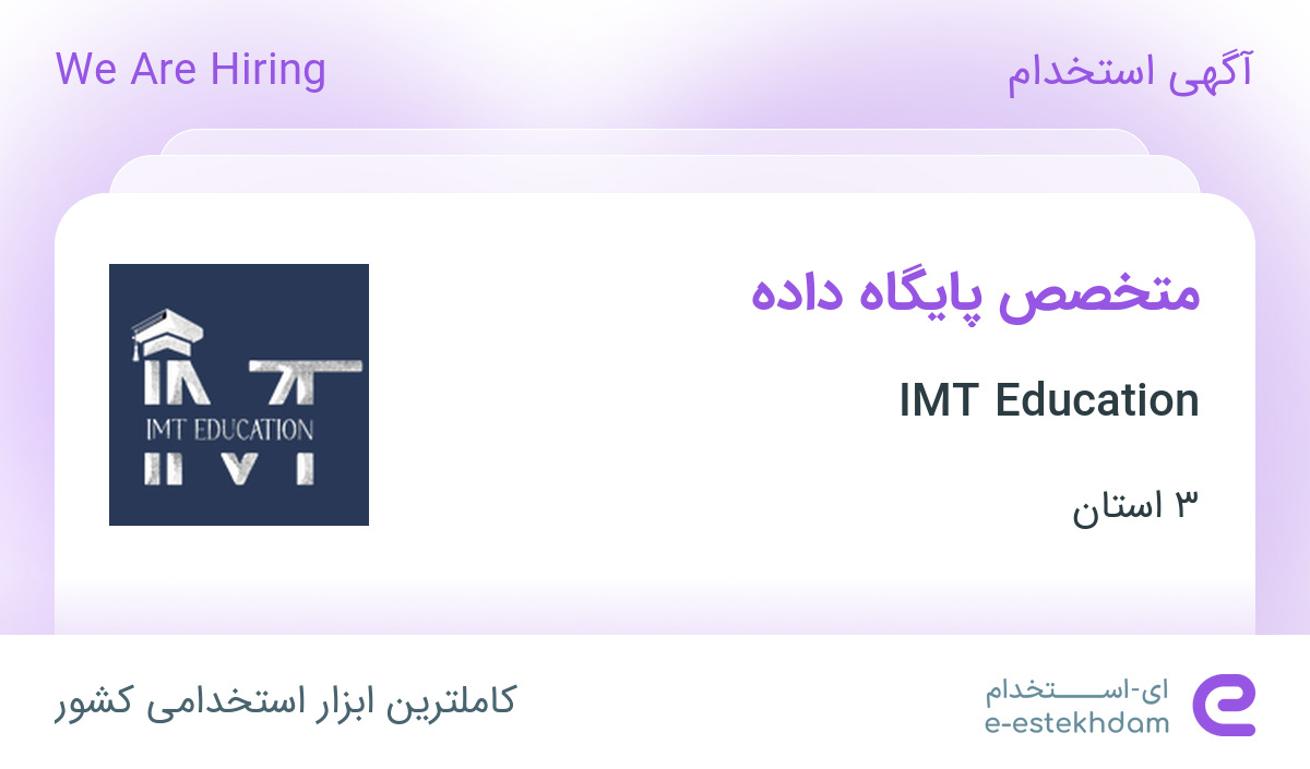 استخدام متخصص پایگاه داده در IMT Education در 3 استان