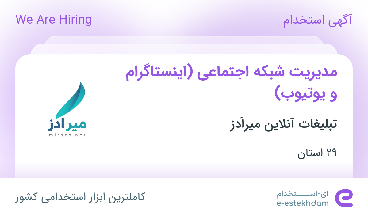 استخدام مدیریت شبکه اجتماعی (اینستاگرام و یوتیوب) در ۲۹ استان