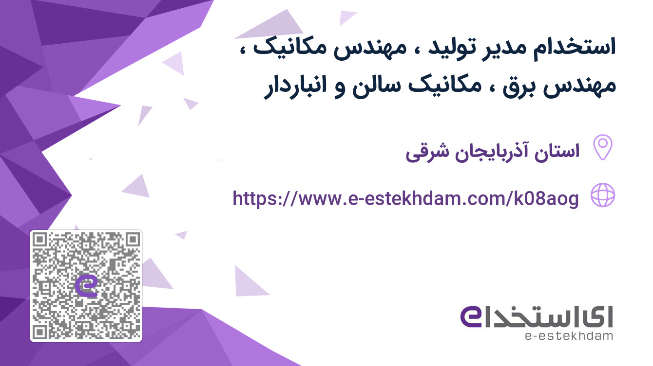 #استخدام #مدیر #تولید #مهندس #مکانیک #مهندس #برق #مکانیک #سالن #انباردار