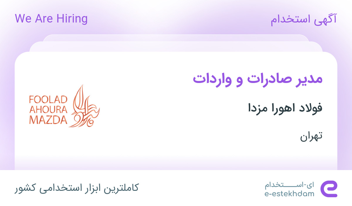 #استخدام #مدیر #صادرات #واردات #در #فولاد #اهورا #مزدا #در #تهران