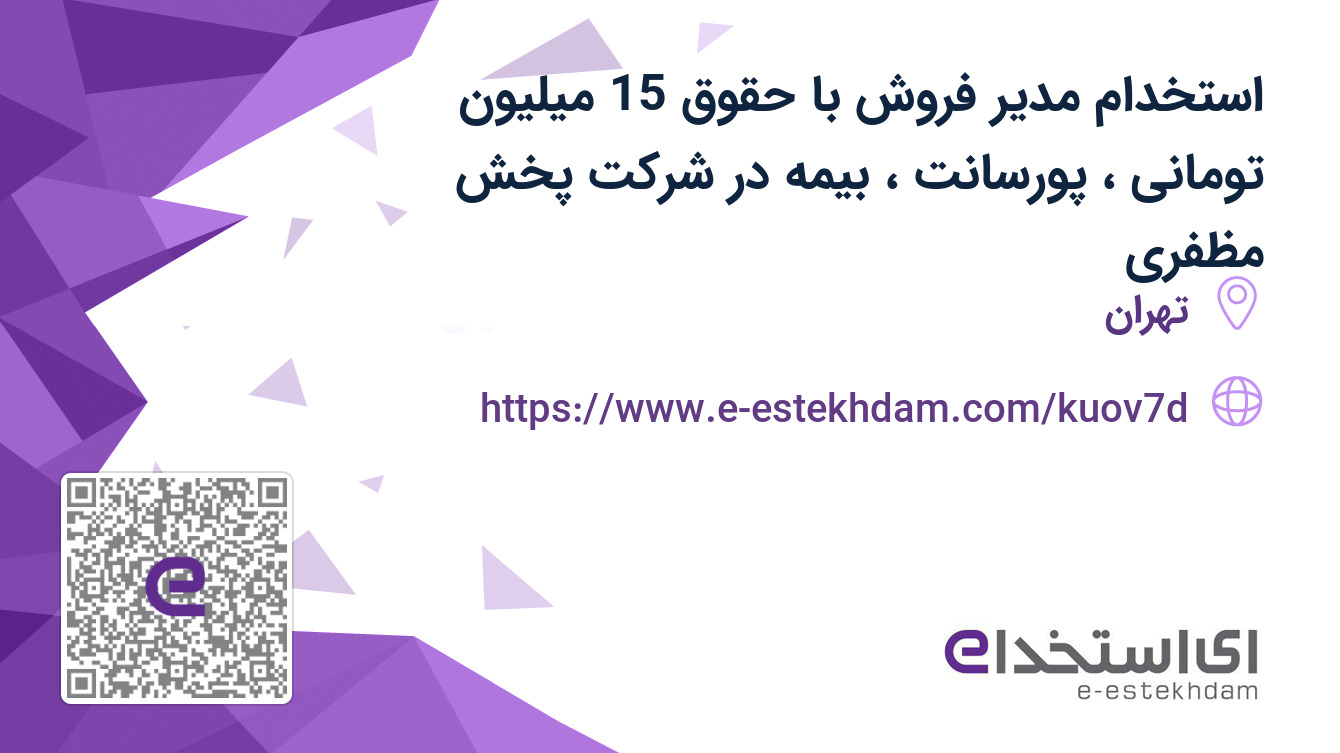 شرکت پخش مظفری جهت تکمیل کادر فروش خود در استان تهران از افراد واجد شرایط زیر دعوت به همکاری می نماید.