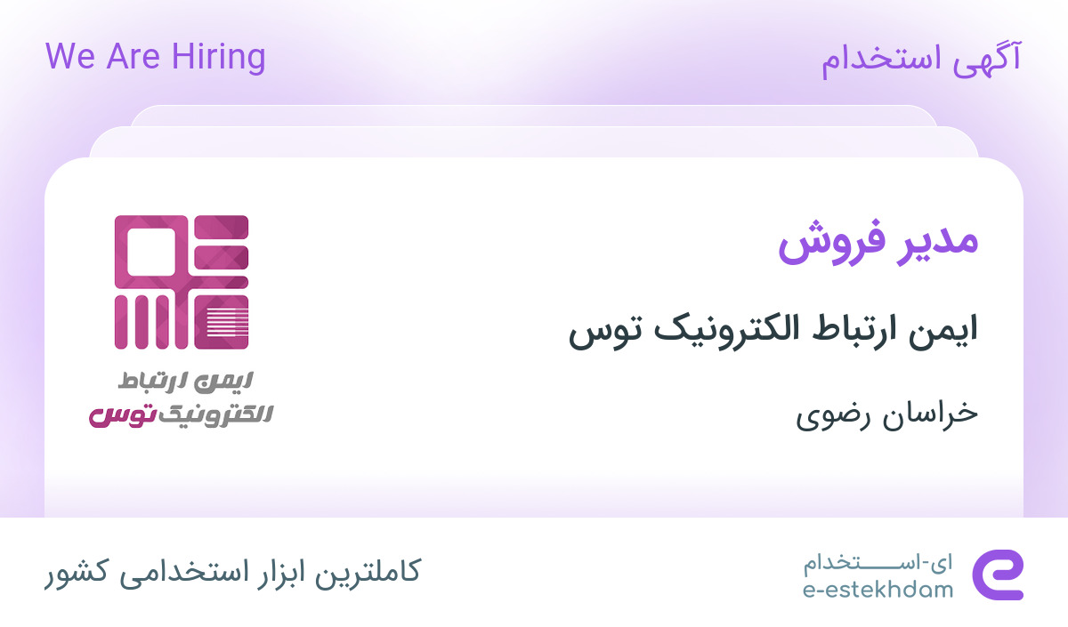 #استخدام #مدیر #فروش #در #ایمن #ارتباط #الکترونیک #توس #در #خراسان #رضوی