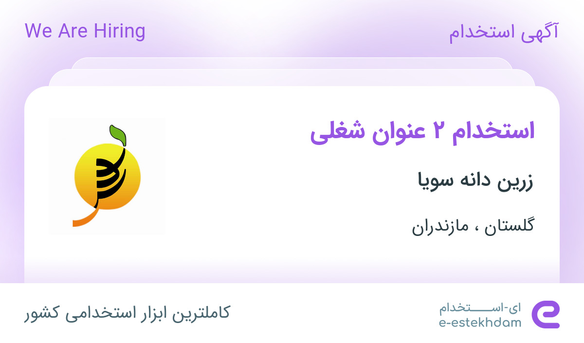 زرین دانه سویا جهت تکمیل کادر خود در استان های گلستان و مازندران از افراد واجد شرایط زیر دعوت به همکاری می نماید.