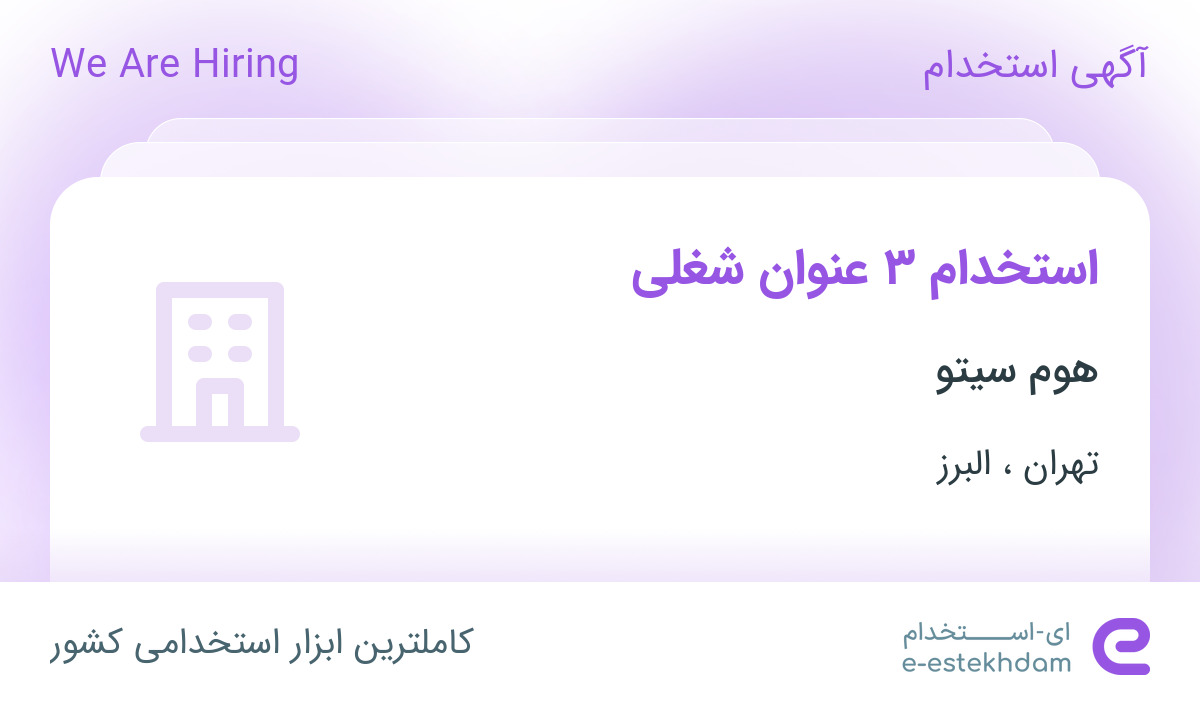 هوم سیتو جهت تکمیل کادر خود در استان های تهران و البرز از افراد واجد شرایط زیر دعوت به همکاری می نماید.