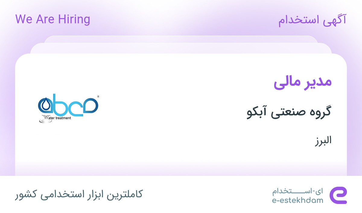 #استخدام #مدیر #مالی #در #گروه #صنعتی #آبکو #در #منطقه #ویژه #اقتصادی #پیام #البرز