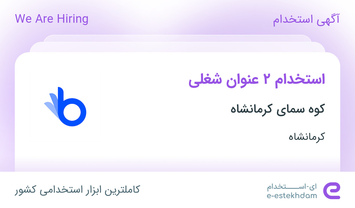 شرکت کوه سمای کرمانشاه جهت تکمیل کادر خود در استان کرمانشاه از افراد واجد شرایط زیر دعوت به همکاری مینماید.
