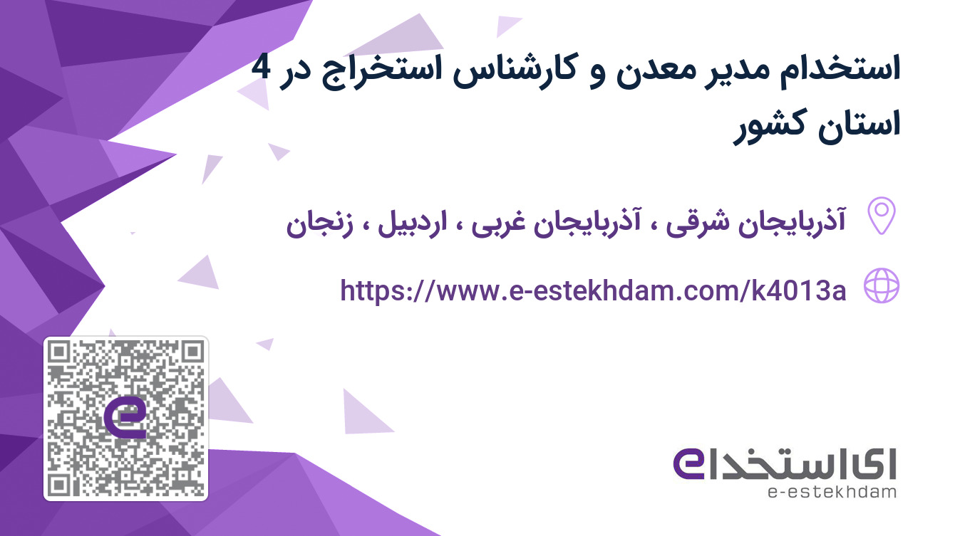 یک شرکت فعال و معتبر در حوزه اکتشاف، استخراج و فرآوری مواد معدنی فلزی و غیرفلزی جهت تکمیل کادر خود در استان های آذربایجان شرقی، آذربایجان غربی، اردبیل و زنجان از افراد واجد شرایط زیر دعوت به همکاری مینماید.