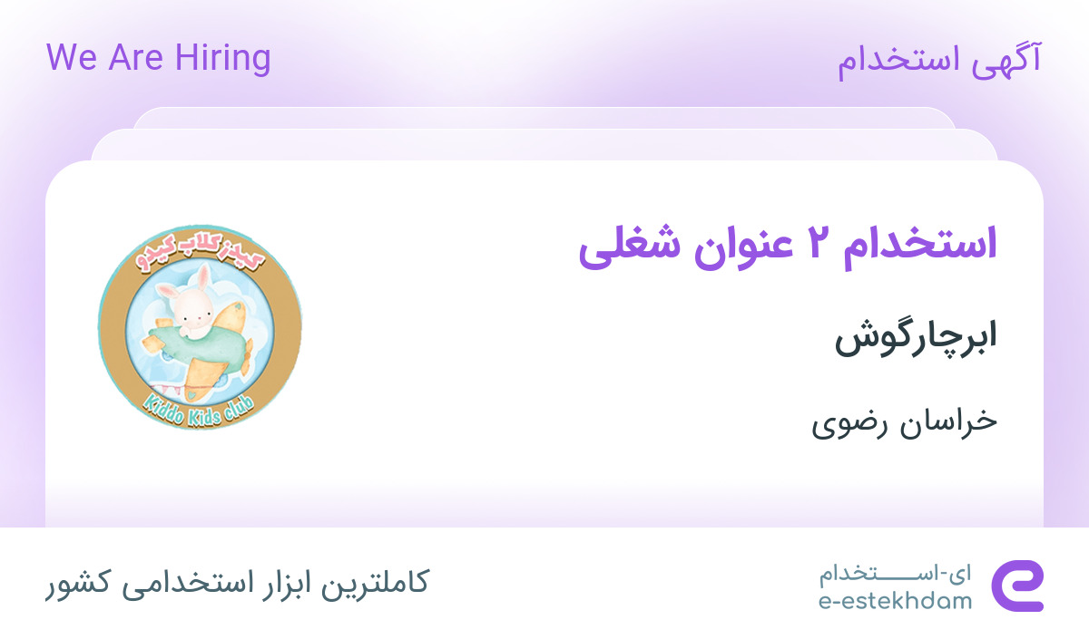 مجموعه آموزشی و تفریحی ابرچارگوش جهت تکمیل کادر خود در استان خراسان رضوی از افراد واجد شرایط زیر دعوت به همکاری مینماید.