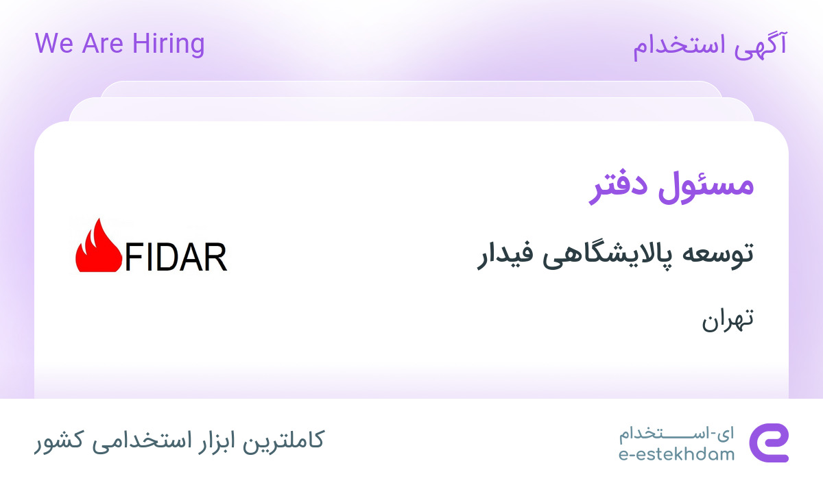 شرکت فیدار که با تکیه بر دانش بومی و توان داخلی فعالیت خود را در حوزه احداث مینی پالایشگاهها با احداث دو مینی پالایشگاه در سال 1399 آغاز نموده است، قصد دارد برای تکمیل کادر حرفه ای خود جهت افزایش ظرفیت فردی از افراد واجد شرایط در استان تهران دعوت به همکاری نماید.