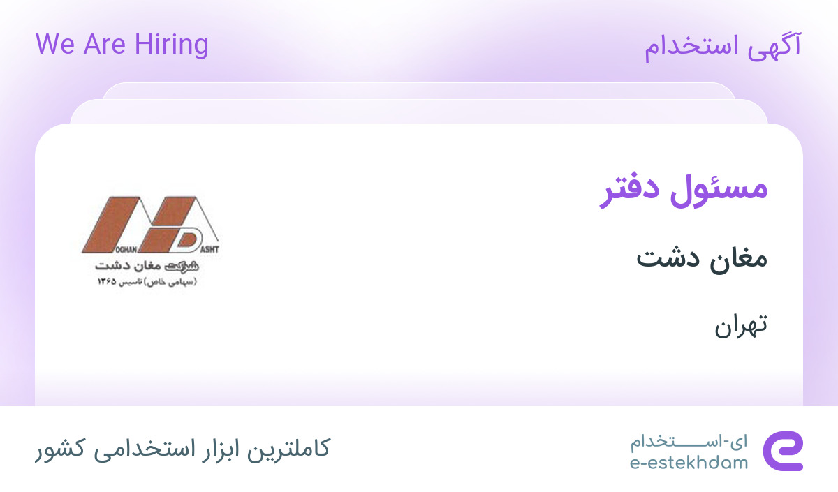 #استخدام #مسئول #دفتر #در #مغان #دشت #در #محدوده #میرداماد #تهران