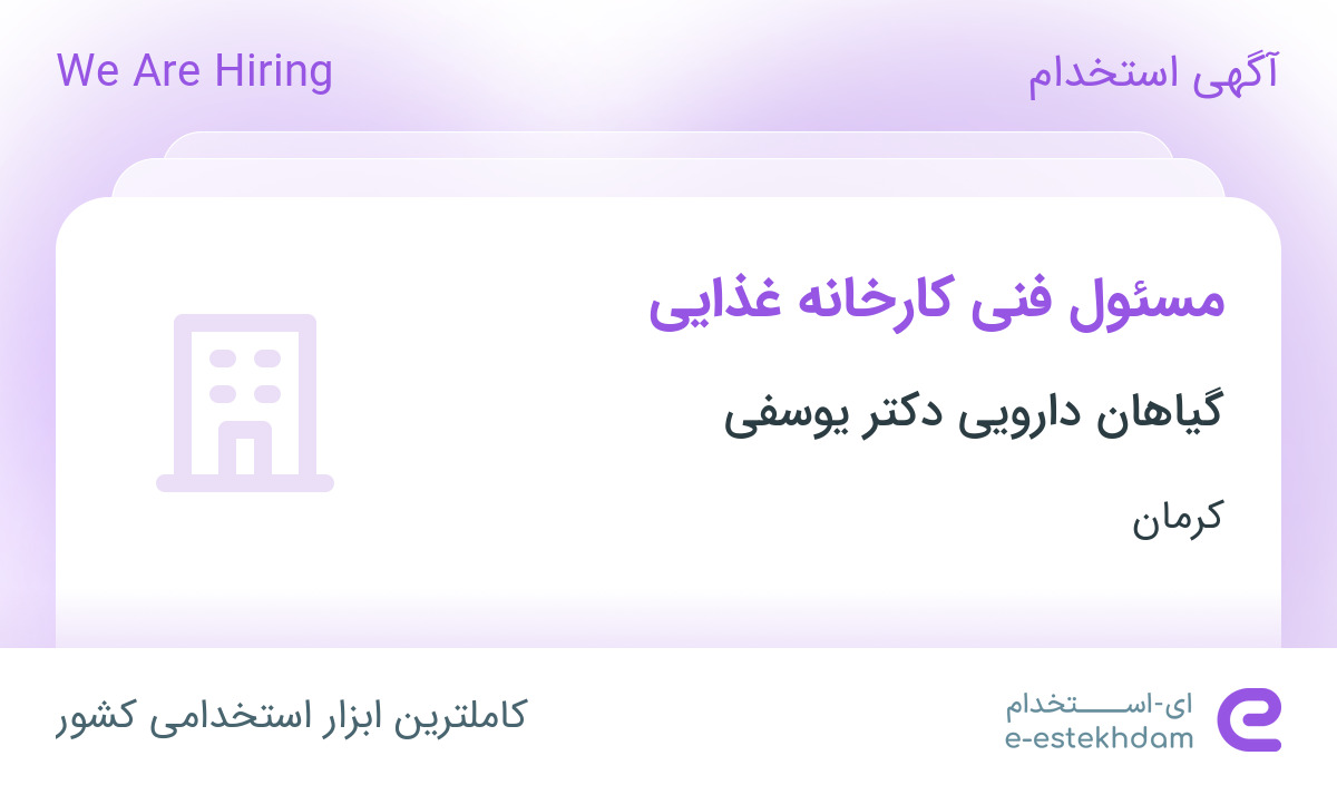 استخدام مسئول فنی کارخانه غذایی در گیاهان دارویی دکتر یوسفی در کرمان