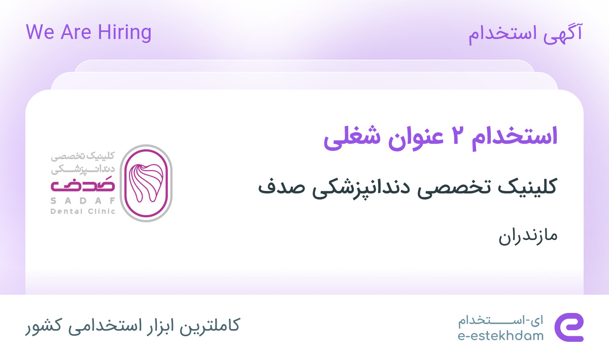 کلینیک تخصصی دندانپزشکی صدف جهت تکمیل کادر خود در استان مازندران از افراد واجد شرایط زیر دعوت به همکاری مینماید.