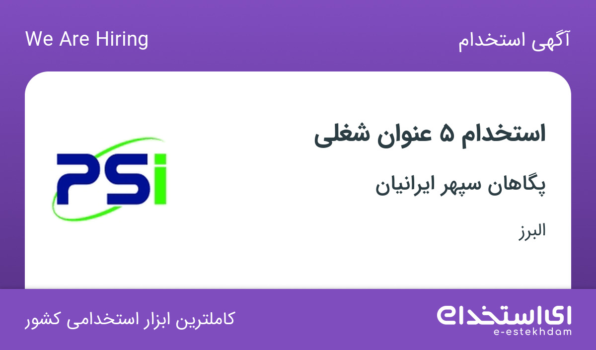 پگاهان سپهر ایرانیان جهت تکمیل کادر خود در استان البرز از افراد واجد شرایط زیر دعوت به همکاری می نماید.