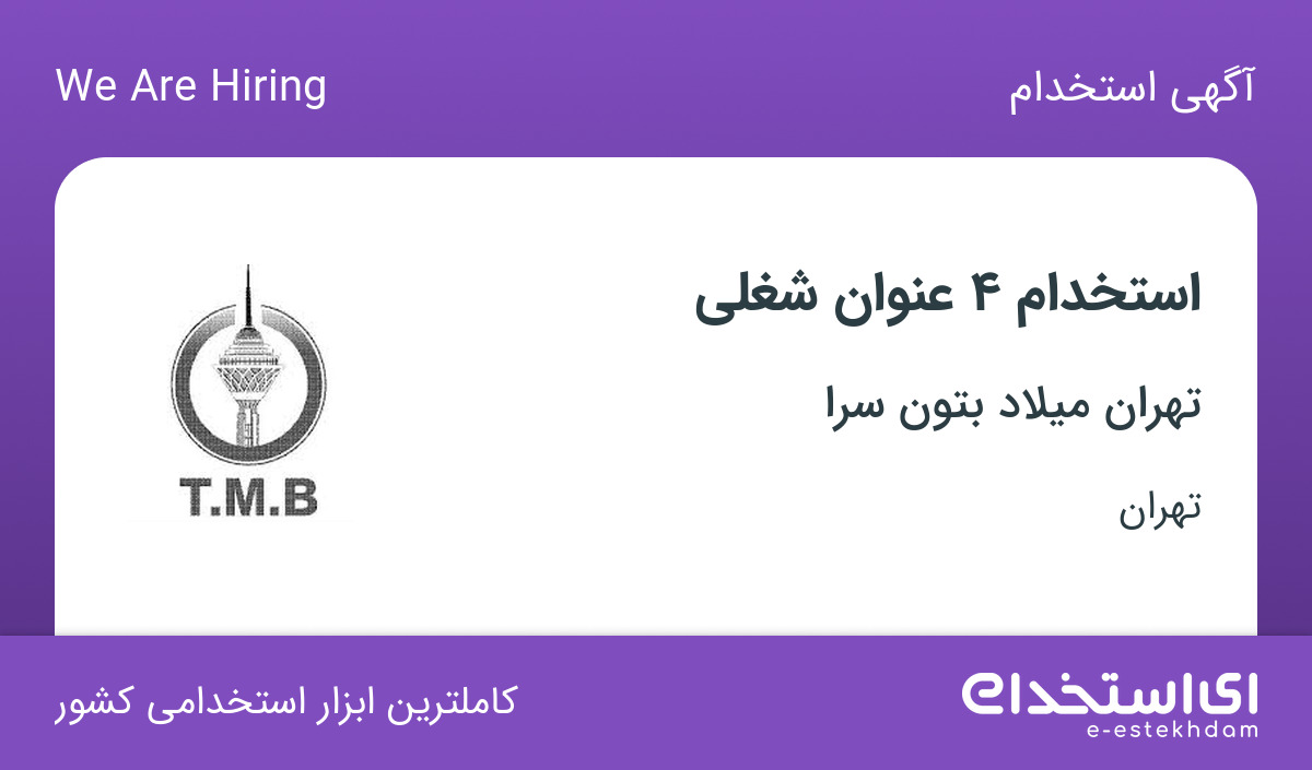 #استخدام #منشی #مهندس #عمران #آشپز #حسابدار #در #تهران #میلاد #بتون #سرا #در #تهران