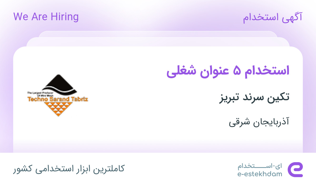 تکین سرند تبریز جهت تکمیل کادر خود در استان آذربایجان شرقی از افراد واجد شرایط زیر دعوت به همکاری می نماید.
