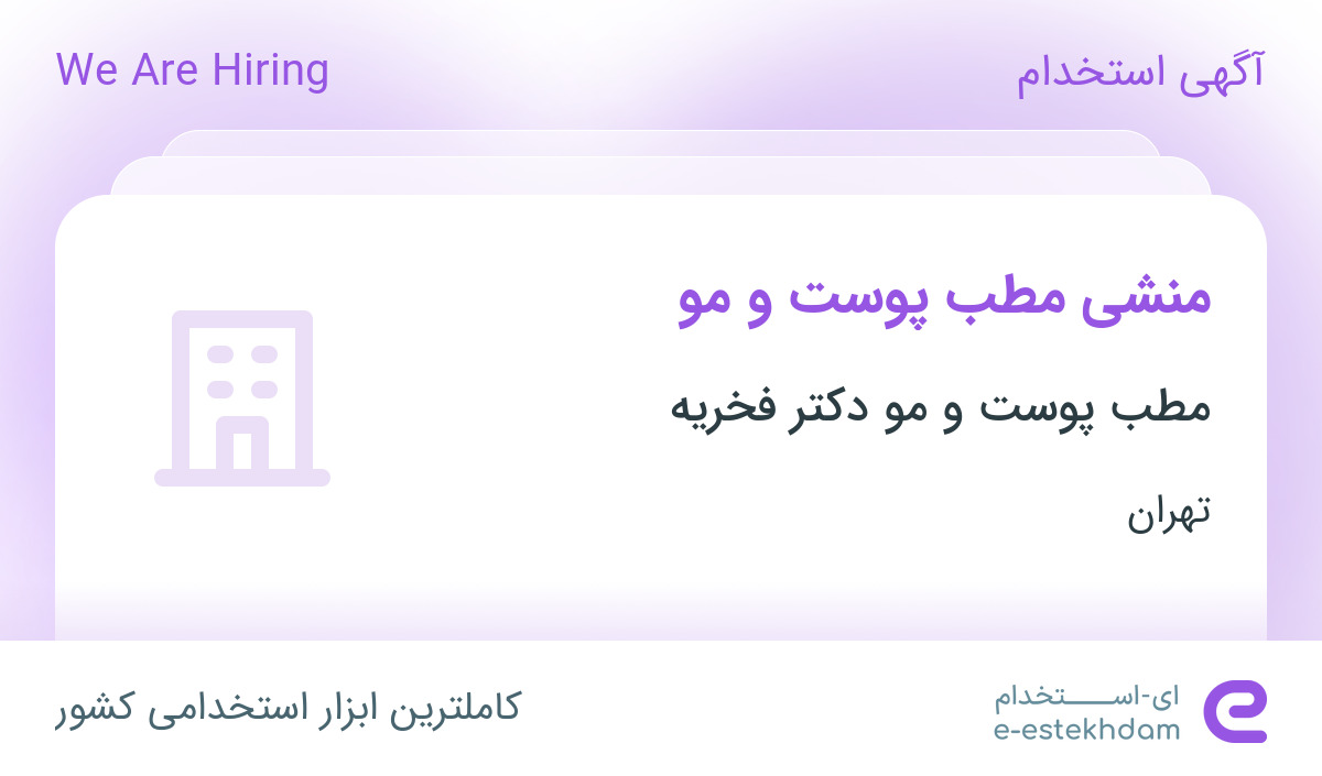 استخدام منشی مطب پوست و مو در مطب پوست و مو دکتر فخریه در تهران