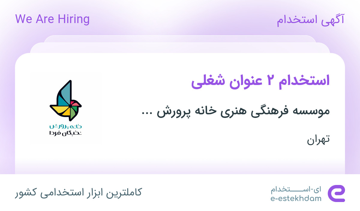 استخدام موسسه فرهنگی هنری خانه پرورش نخبگان فردا