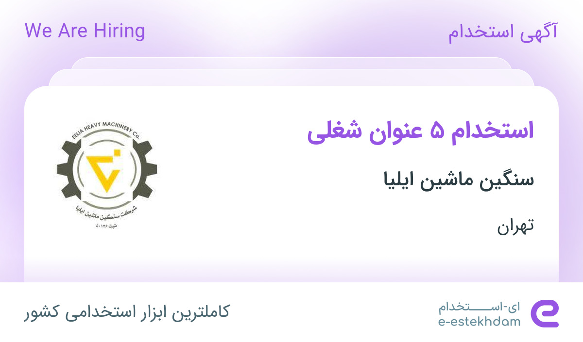 شرکت سنگین ماشین ایلیا جهت تکمیل کادر فنی خود در استان تهران از افراد واجد شرایط زیر دعوت به همکاری می نماید.