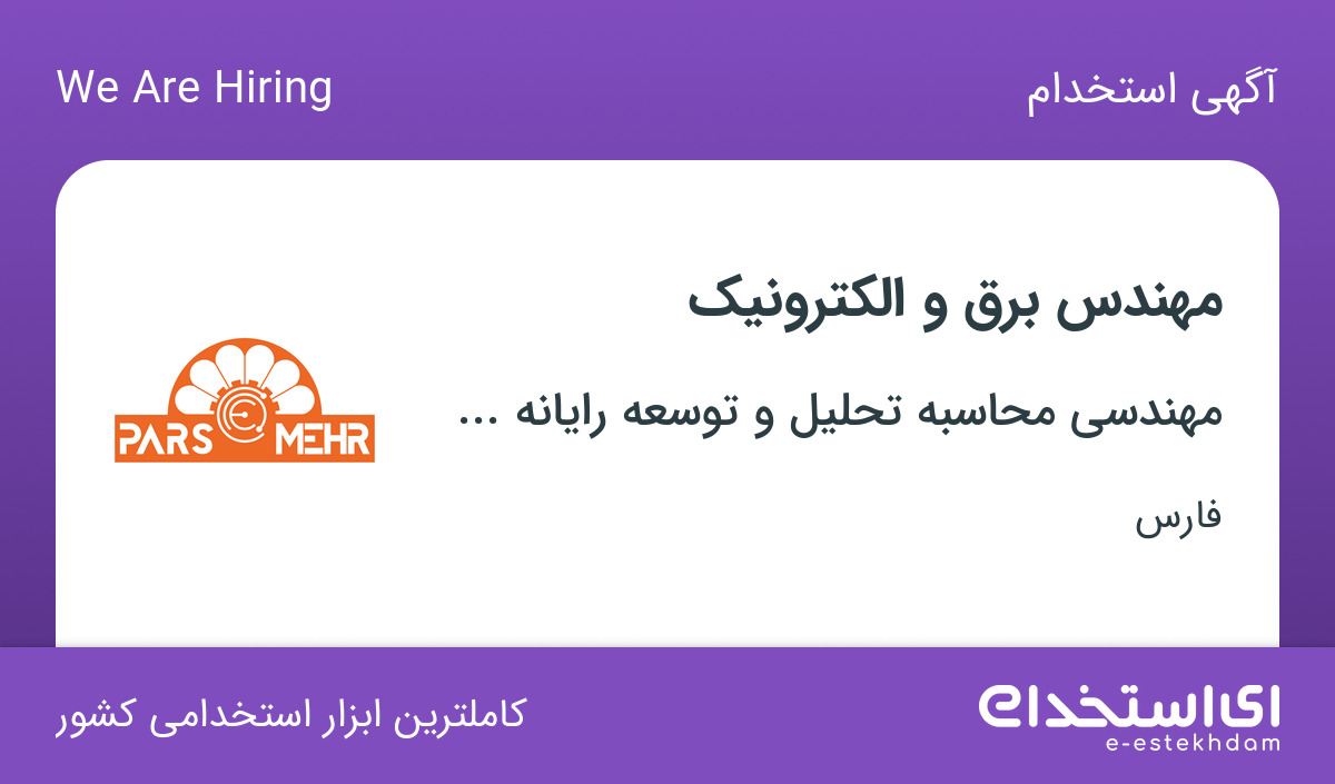 #استخدام #مهندس #برق #الکترونیک #با #بیمه #پاداش #در #شیراز