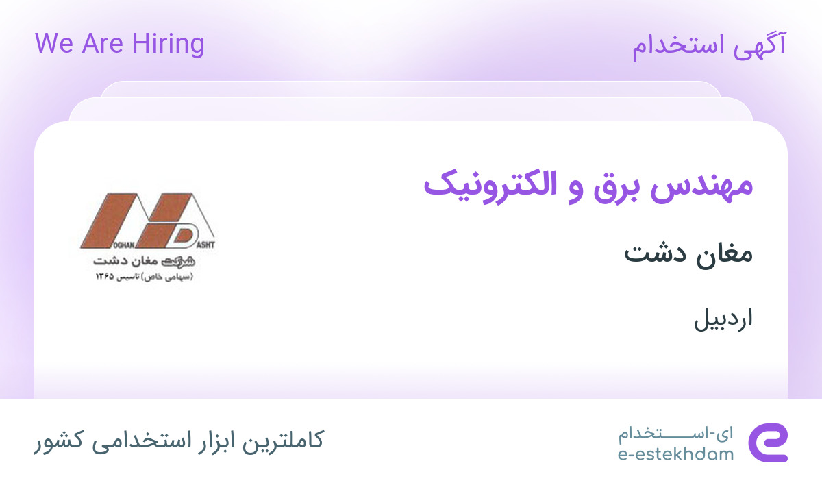 استخدام مهندس برق و الکترونیک در مغان دشت در اردبیل