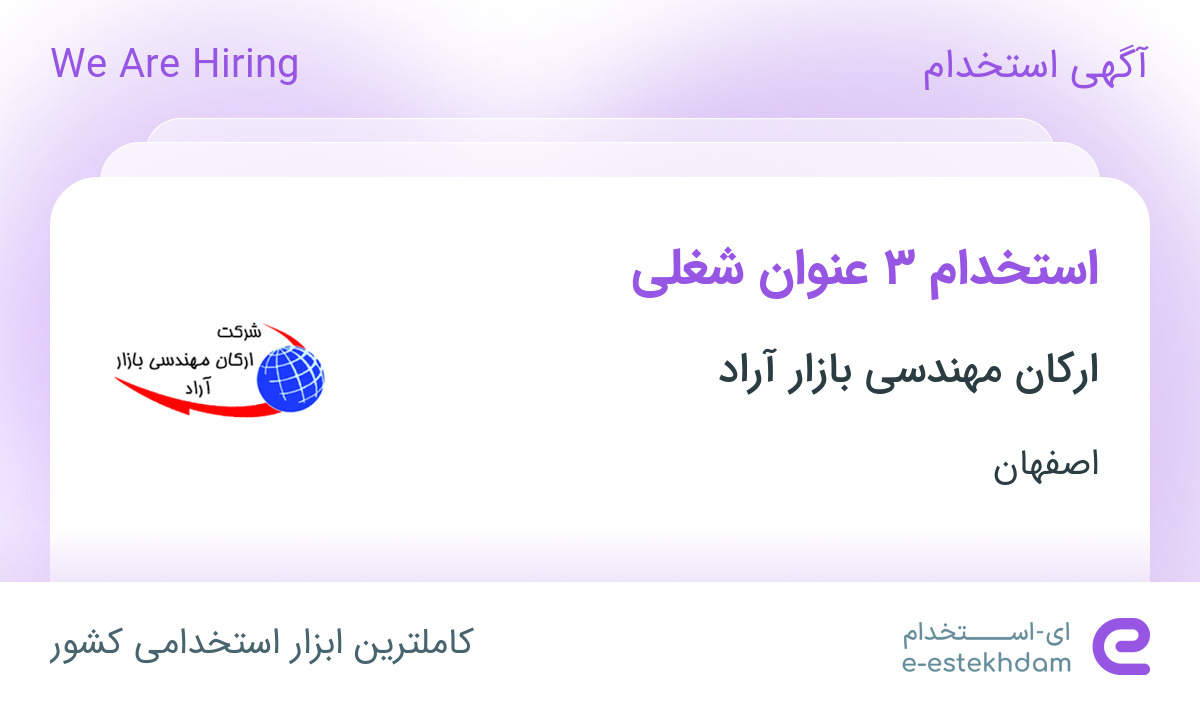 شرکت ارکان مهندسی بازار آراد در شهرک علمی و تحقیقاتی جهت تکمیل کادر خود در استان اصفهان از افراد واجد شرایط زیر دعوت به همکاری مینماید.