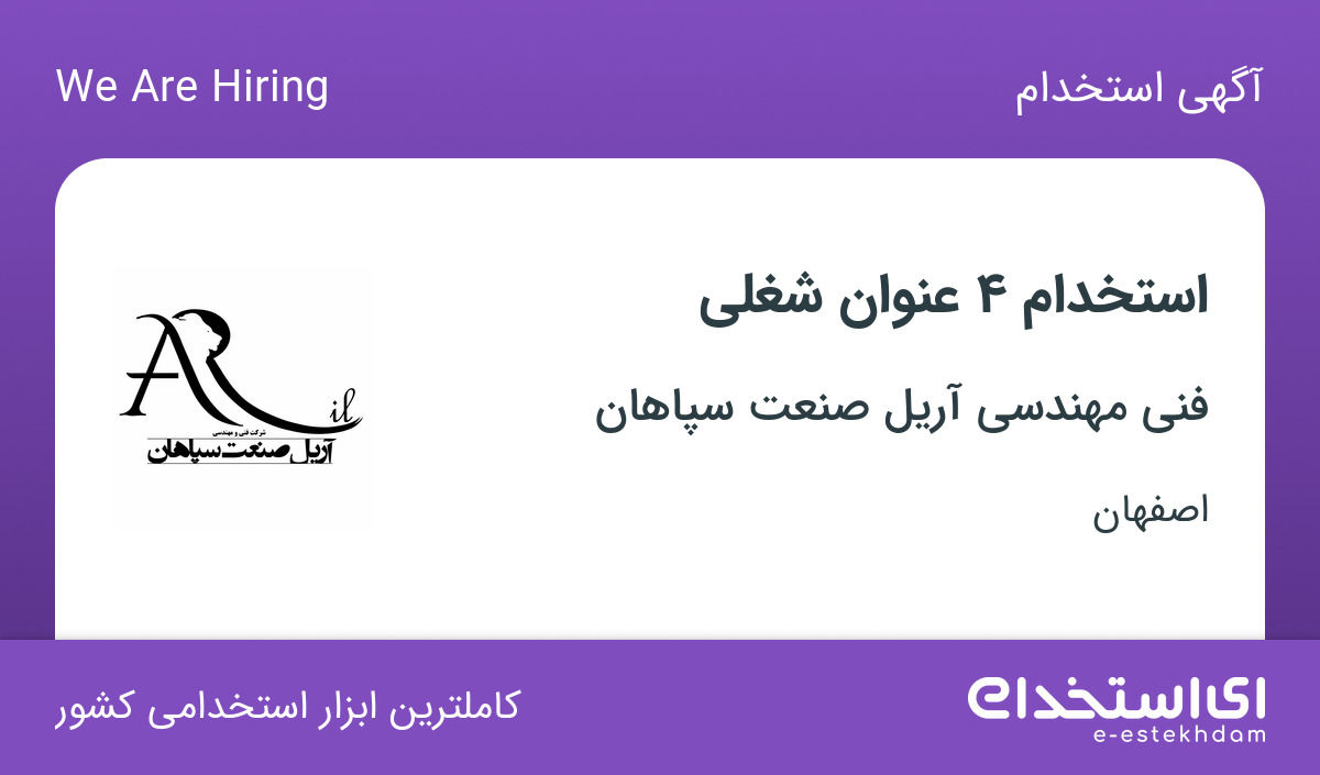 استخدام فنی مهندسی آریل صنعت سپاهان