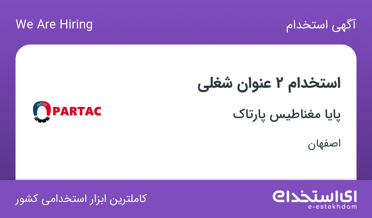 پایا مغناطیس پارتاک جهت تکمیل کادر خود در استان اصفهان از افراد واجد شرایط زیر دعوت به همکاری می نماید.
