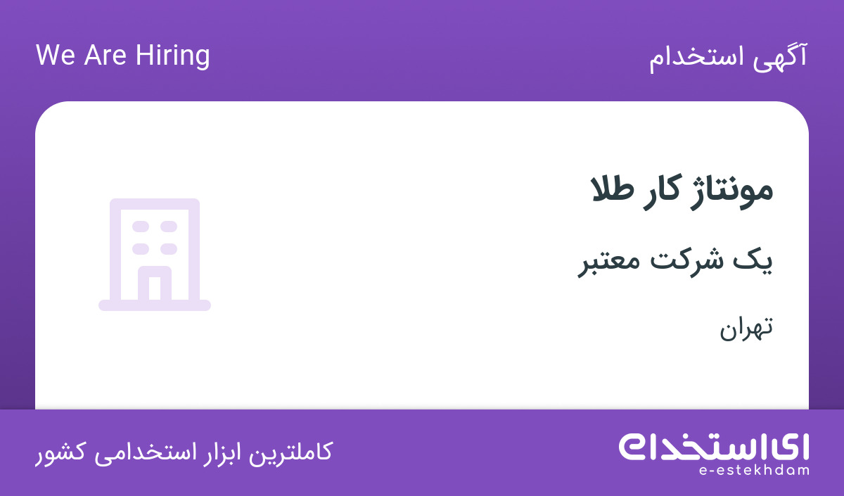 یک شرکت معتبر در تهران (منطقه ۱۲، سنگلج) جهت تکمیل کادر خود از متقاضیان ساکن استان تهران استخدام مینماید