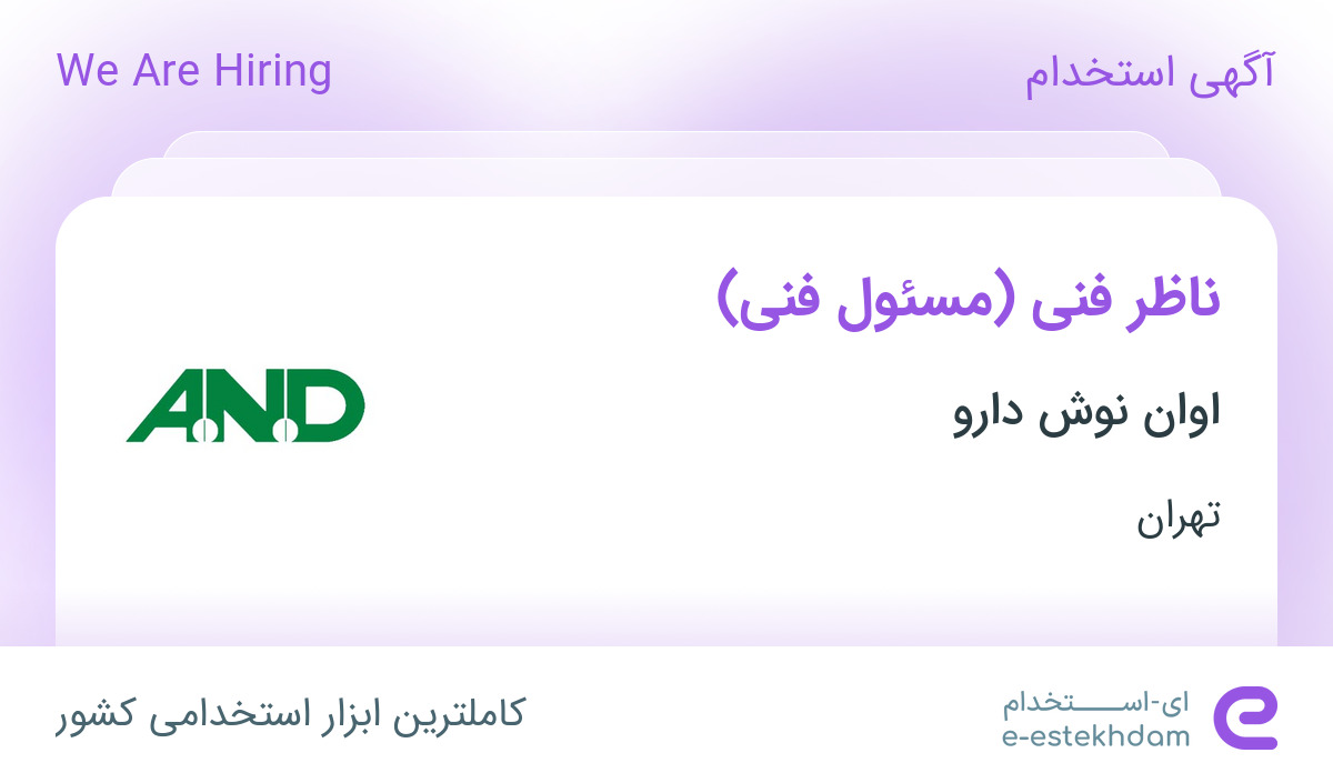 #استخدام #ناظر #فنی #مسئول #فنی #در #اوان #نوش #دارو #در #محدوده #میدان #ولیعصر #تهران