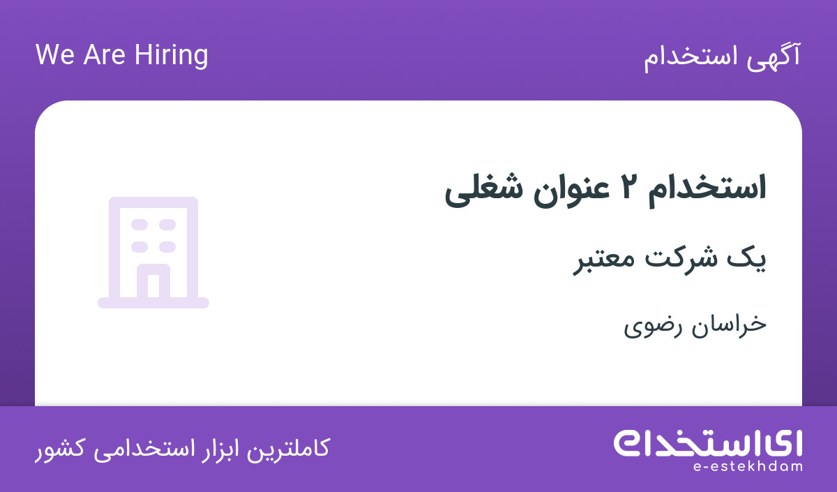 یک مجموعه معتبر جهت تکمیل کادر خود در استان خراسان رضوی از افراد واجد شرایط زیر دعوت به همکاری می نماید.