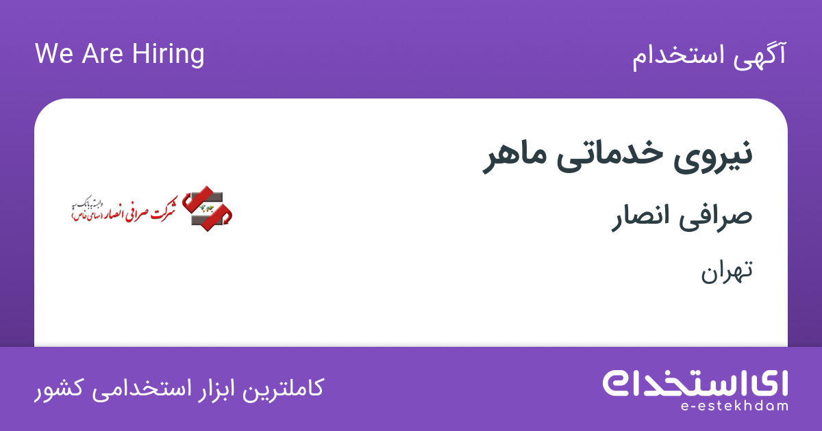 استخدام نیروی خدماتی ماهر در صرافی انصار در محدوده فاطمی تهران