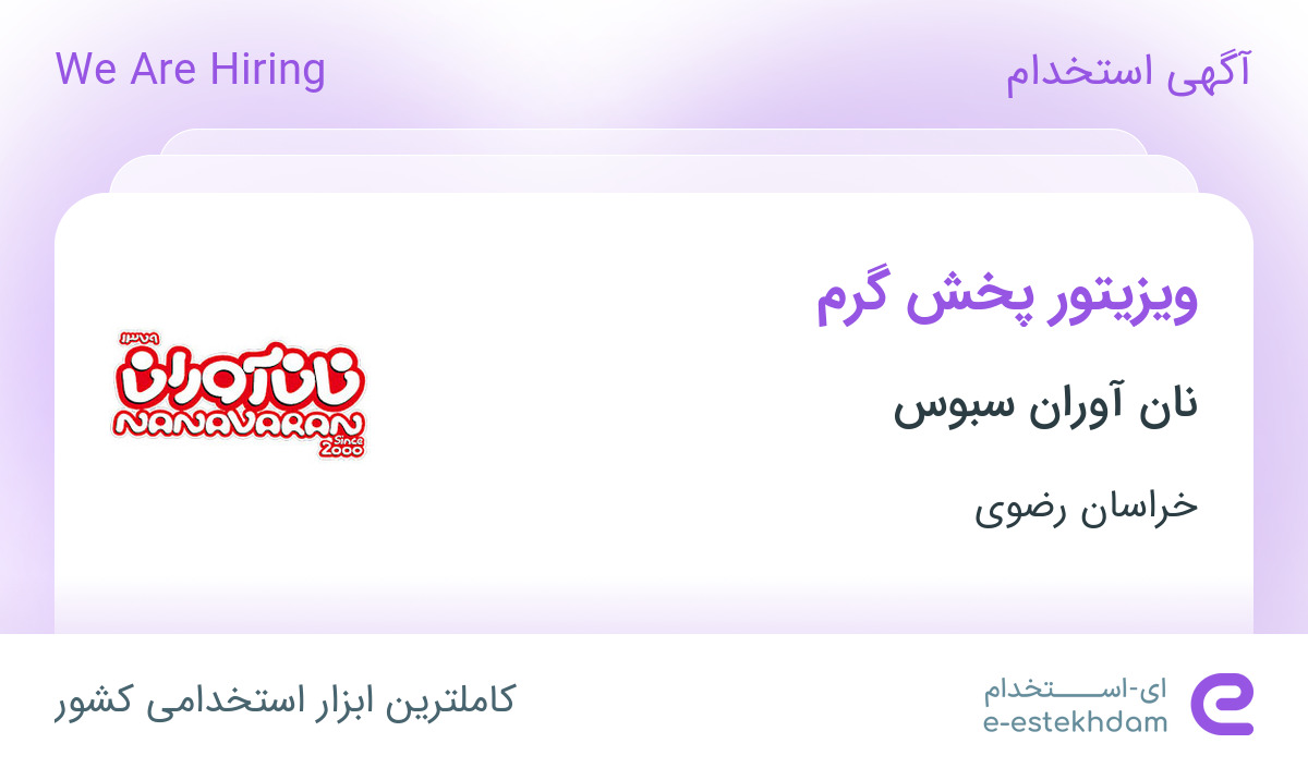 استخدام ویزیتور پخش گرم در نان آوران سبوس در خراسان رضوی