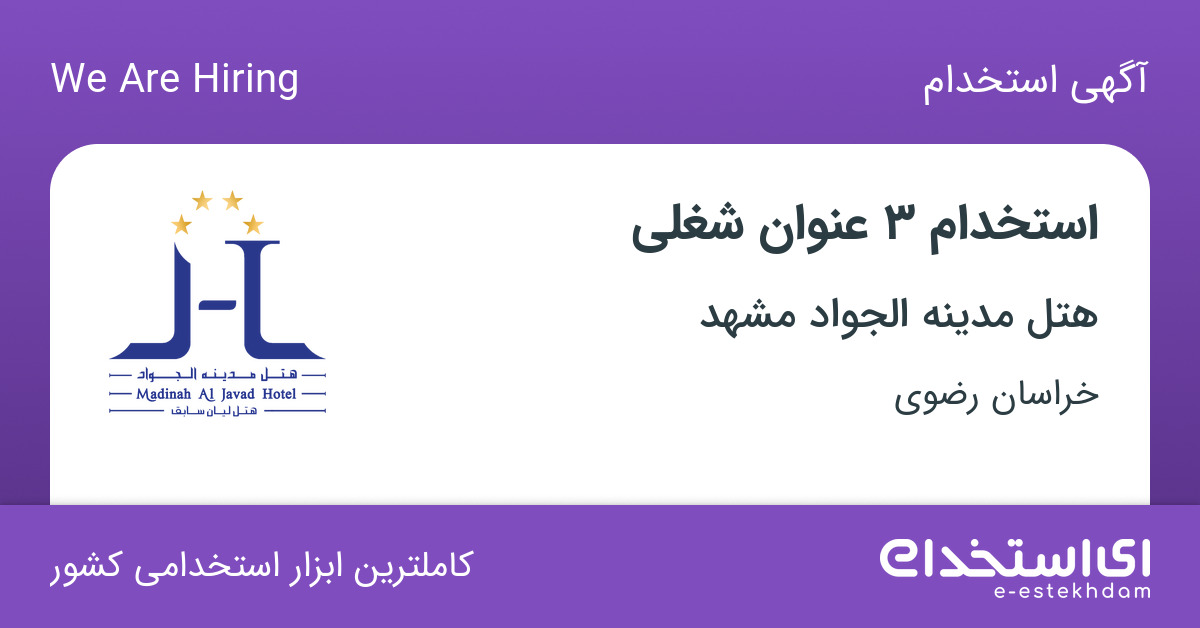 هتل مدینه الجواد جهت تکمیل کادر خود در استان خراسان رضوی از افراد واجد شرایط زیر دعوت به همکاری مینماید.