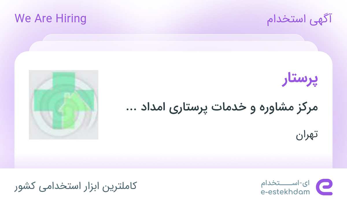 استخدام مرکز مشاوره و خدمات پرستاری امداد مهر وارنامرکز مشاوره و ارائه خدمات پرستاری امداد مهر وارنا جهت تکمیل کادر خود در استان تهران شهر ورامین به کارشناس پرستار جهت مسئول فنی شیفت شب از افراد واجد شرایط زیر دعوت به همکاری مینماید.