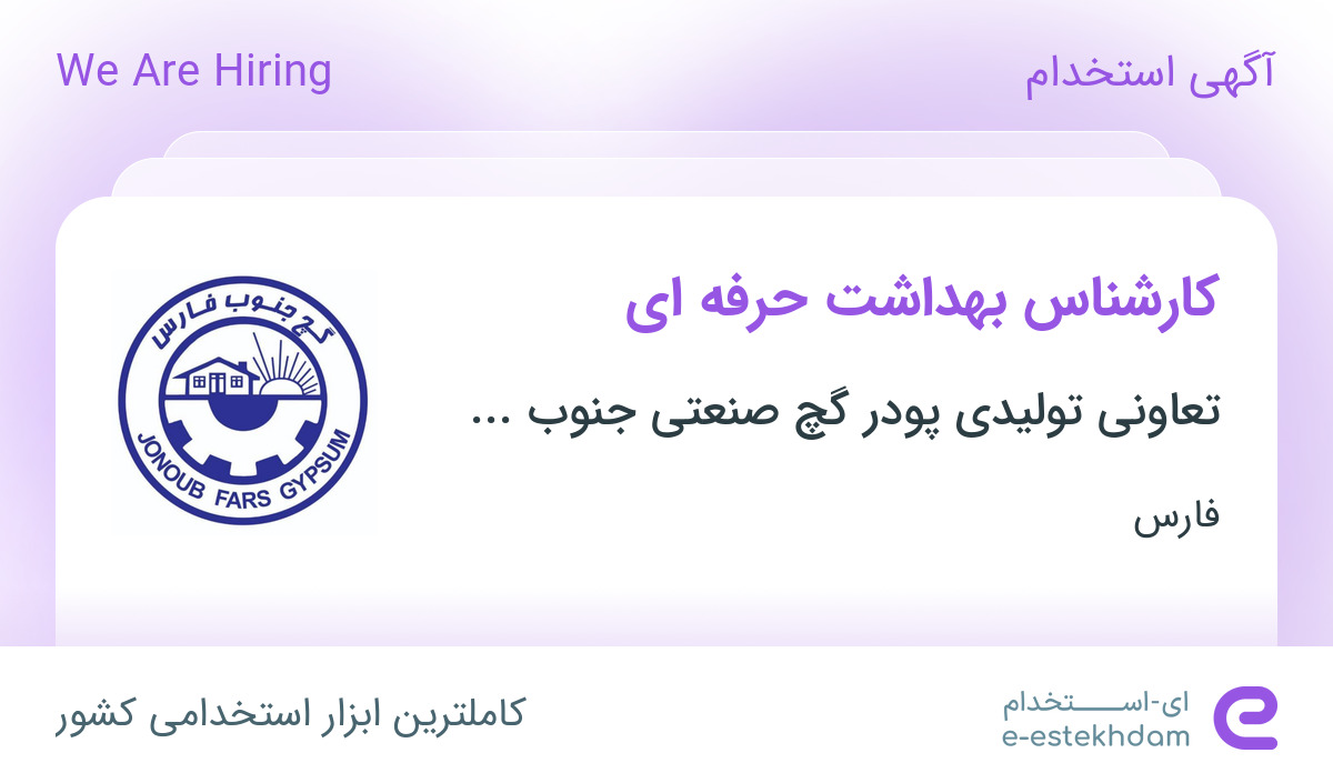 استخدام کارشناس بهداشت حرفهای در اهل فارس