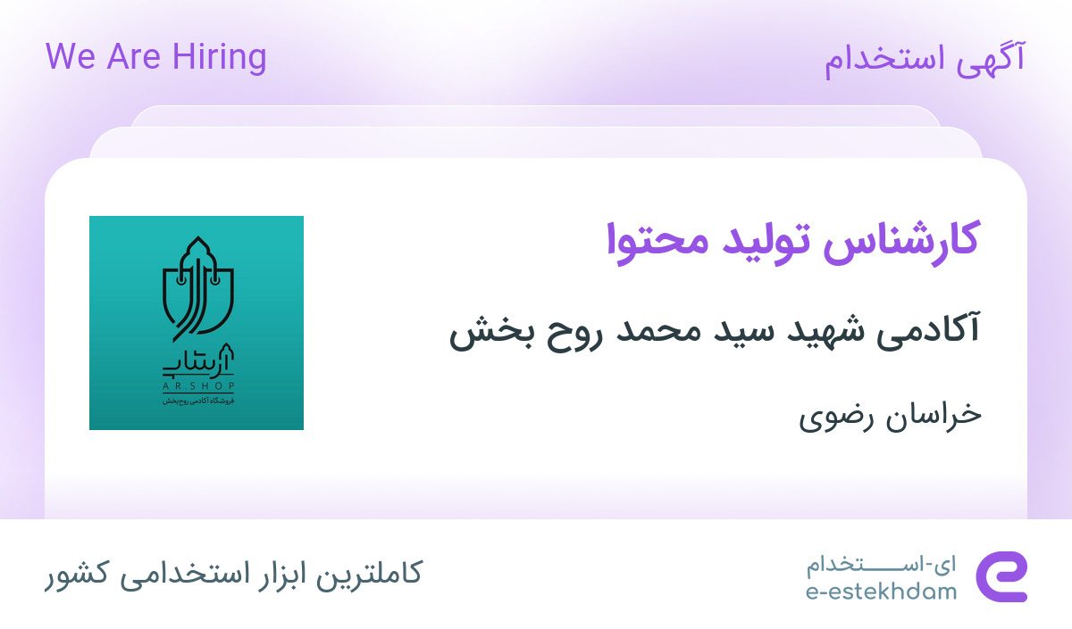 #استخدام #کارشناس #تولید #محتوا #در #آکادمی #شهید #سید #محمد #روح #بخش #در #خراسان #رضوی