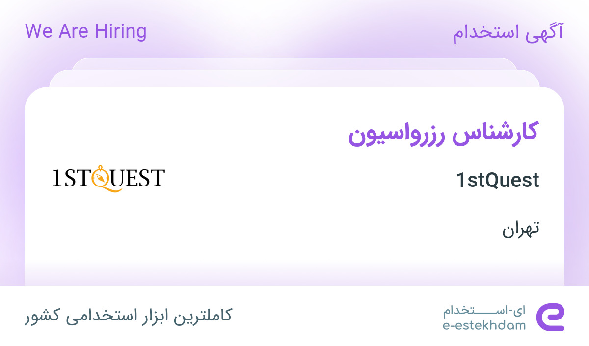 استخدام کارشناس رزرواسیون در 1stQuest در محدوده چیتگر تهران