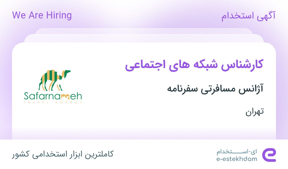 استخدام کارشناس شبکه های اجتماعی در آژانس مسافرتی سفرنامه در تهران