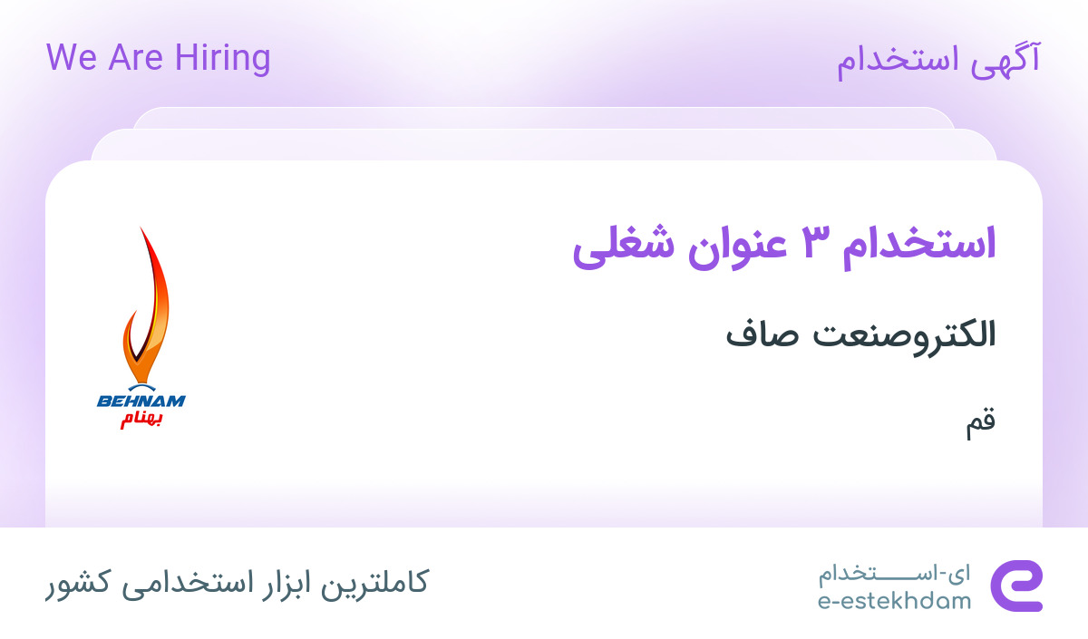 الکتروصنعت صاف جهت تکمیل کادر خود در استان قم از افراد واجد شرایط زیر دعوت به همکاری می نماید.