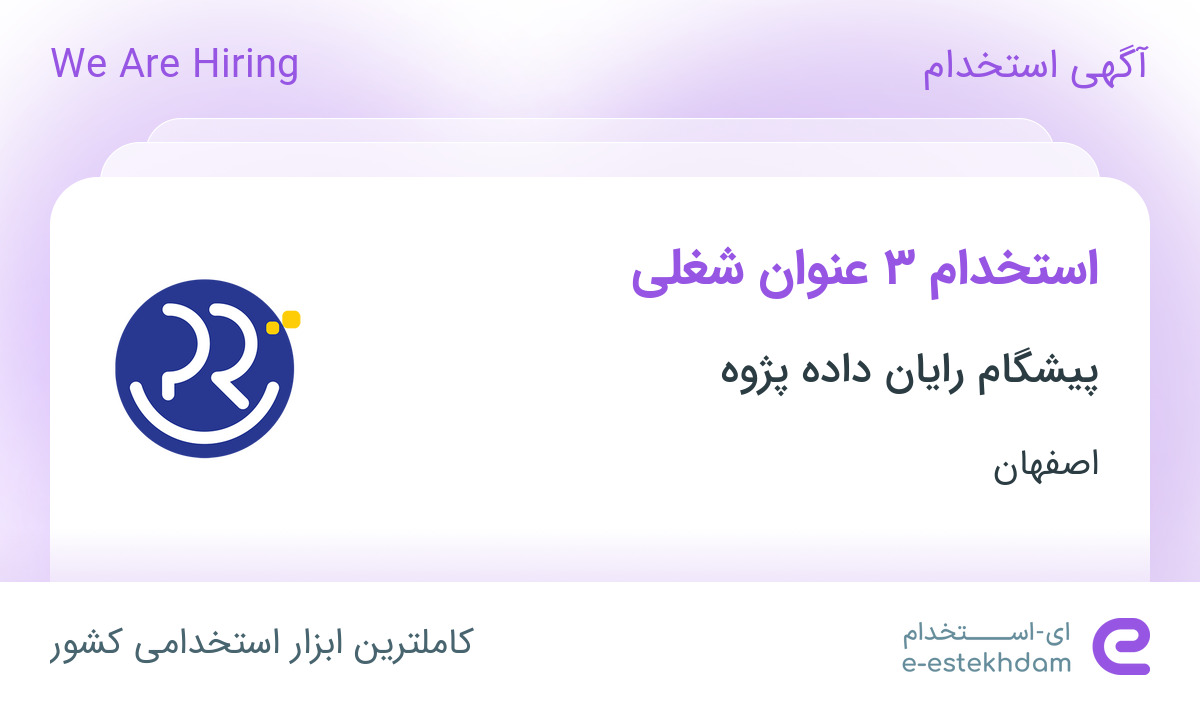 پیشگام رایان داده پژوه جهت تکمیل کادر خود در استان اصفهان از افراد واجد شرایط زیر دعوت به همکاری می نماید.