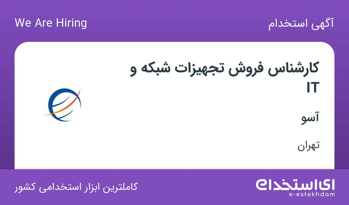 #استخدام #کارشناس #فروش #تجهیزات #شبکه #در #آسو #در #محدوده #دانشگاه #تهران