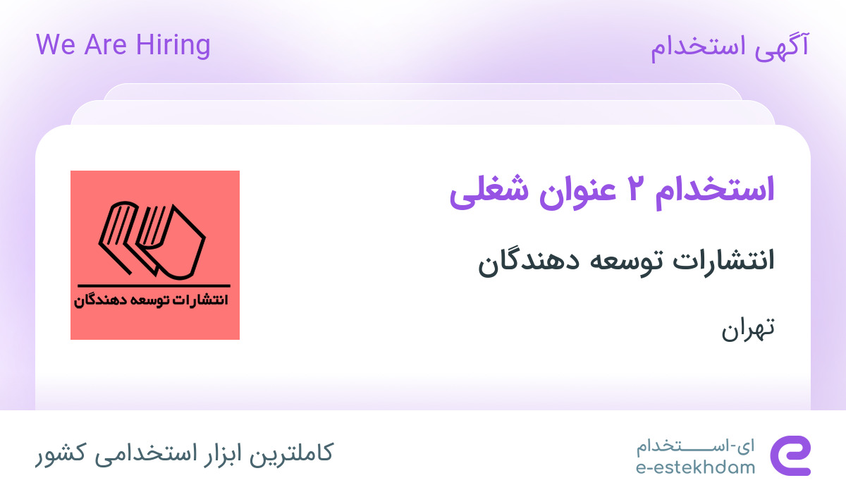 مجموعه انتشاراتی معتبر توسعه دهندگان جهت تکمیل منابع انسانی خود در استان تهران از افراد واجد شرایط زیر دعوت به همکاری می نماید.